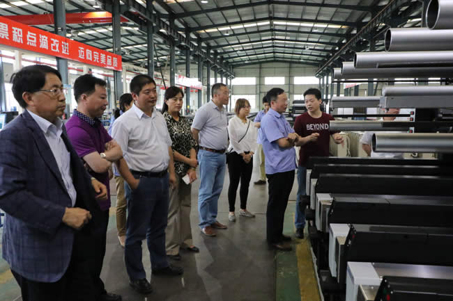 6月5日,华峰氨纶股份有限公司董事长杨从登、副总经理徐宁、吴庆治、华峰集团采购中心主任张所俊等技术 一行,在集团副经理江辉等陪同下,专程来到天明机械集团考察交流。