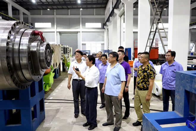 集团董事长卢明立对张永涛副会长、穆太升总经理一行的到来表示热烈欢迎,并详细介绍了企业发展历程及智能化矿产钻采装备研发、推广等情况,陪同客人先后考察了天明机械集团纺机装备、矿山装备和钻掘装备智能制造现场。