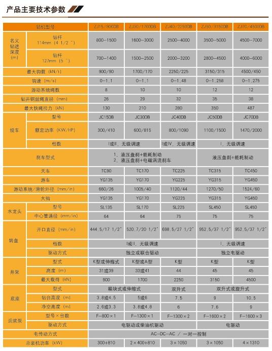 1、采用先进的AC-SCR-DC电传动技术,实现绞车、转盘和泥浆泵的无级调速,获得良好的钻机性能。
