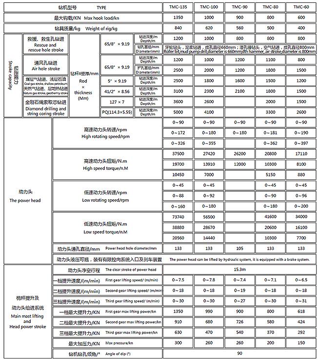 ◇采用了伸缩桅杆技术使钻机具有提升能力大、净空行程长、运输长度短等优点;